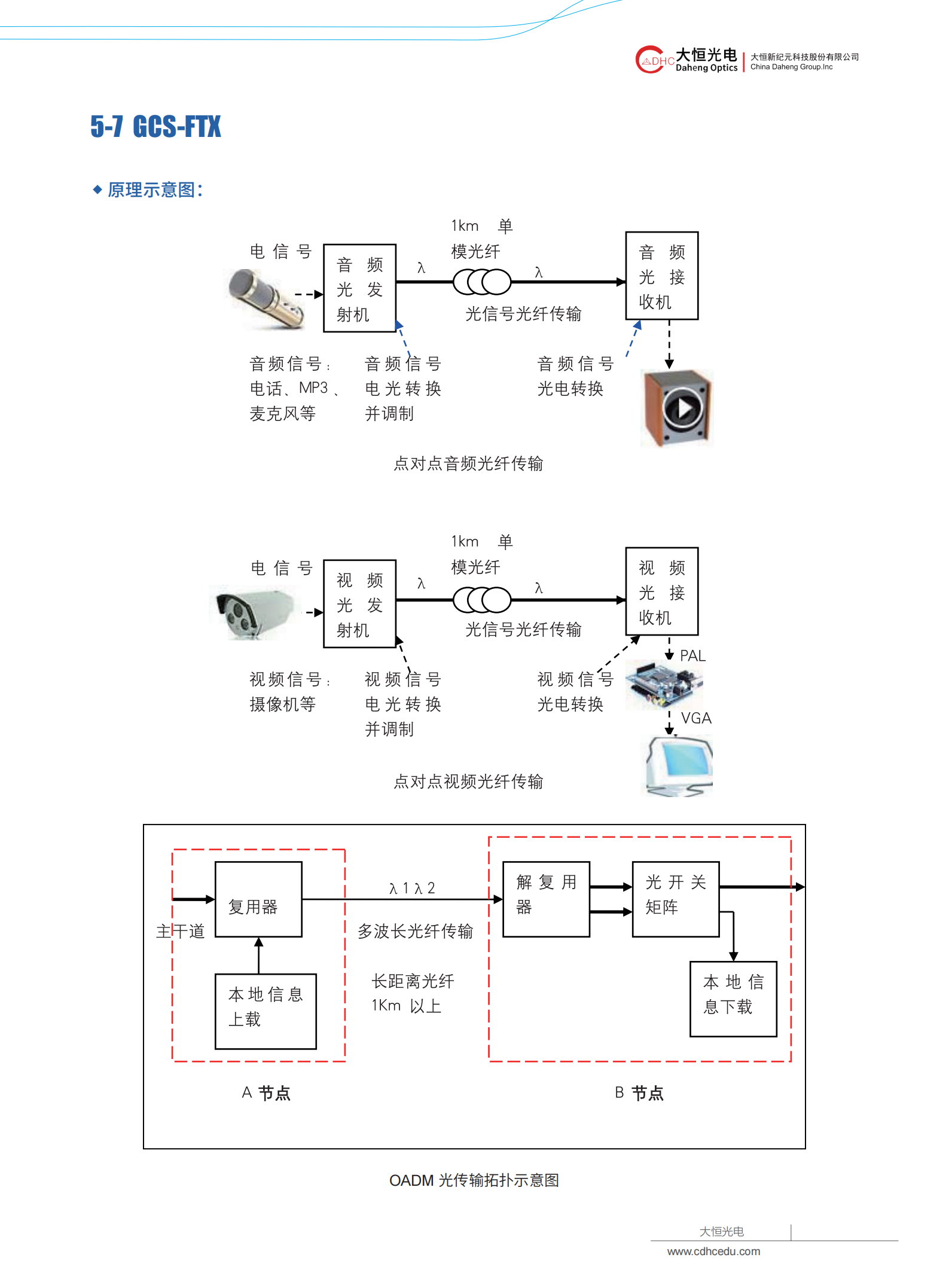 WDM、OADM、音频信号光传输、视频信号光传输、点对点光纤通信
