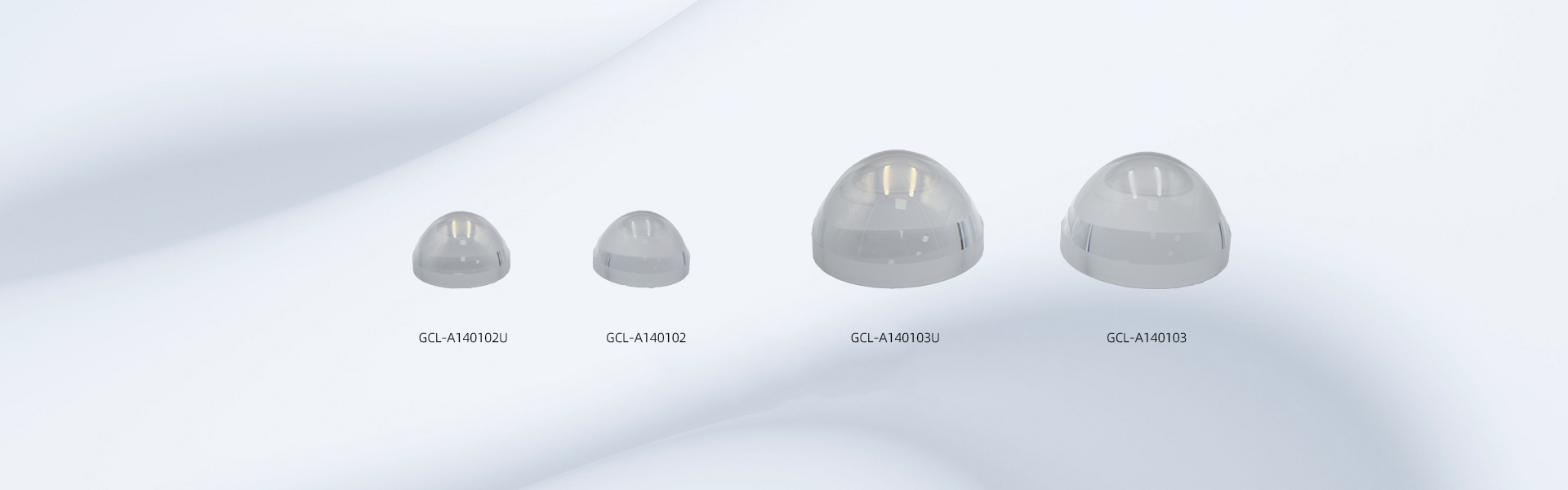GCL-A1401系列大口径非球面透镜,Ø25.0mm和Ø50.0mm,且具有高数值孔径(NA)0.65。该系列透镜使用紫外熔融石英基底,从紫外到红外波段都具有较高透过率,镀紫外宽带增透膜(BBAR)在250-400nm范围内能提供更高的透过率。